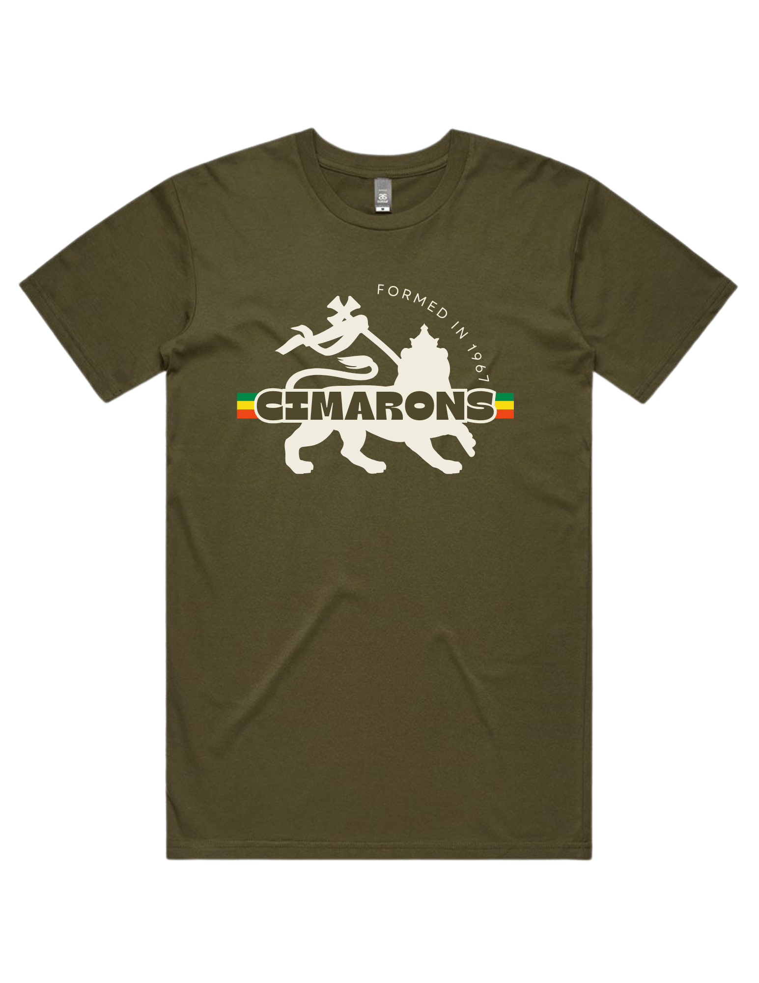 Cimarons t-shirt with the logo and lion on the front. Colour: khaki